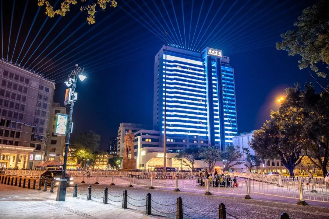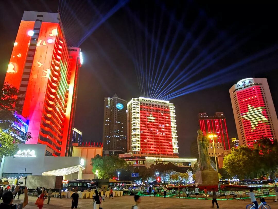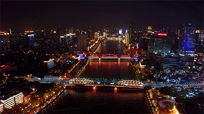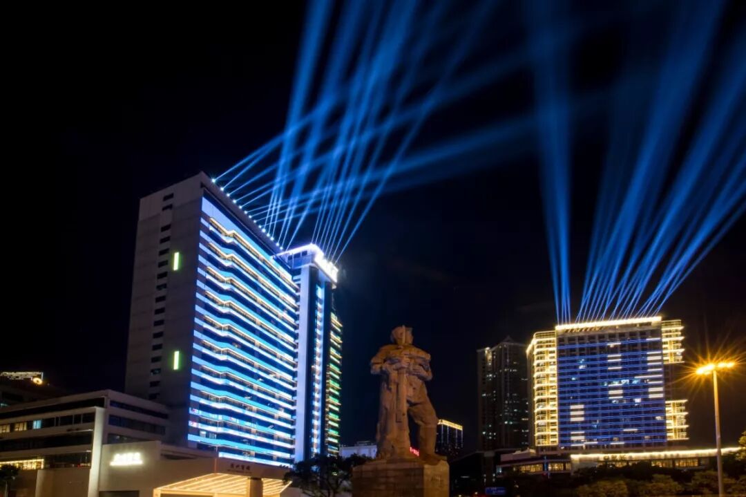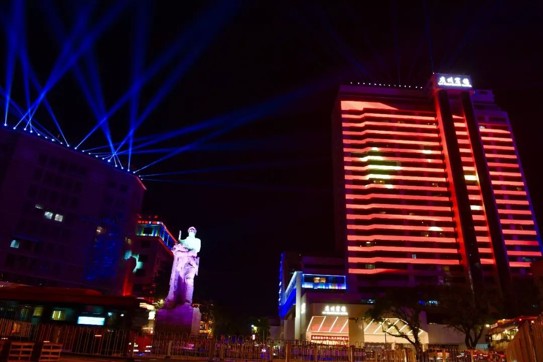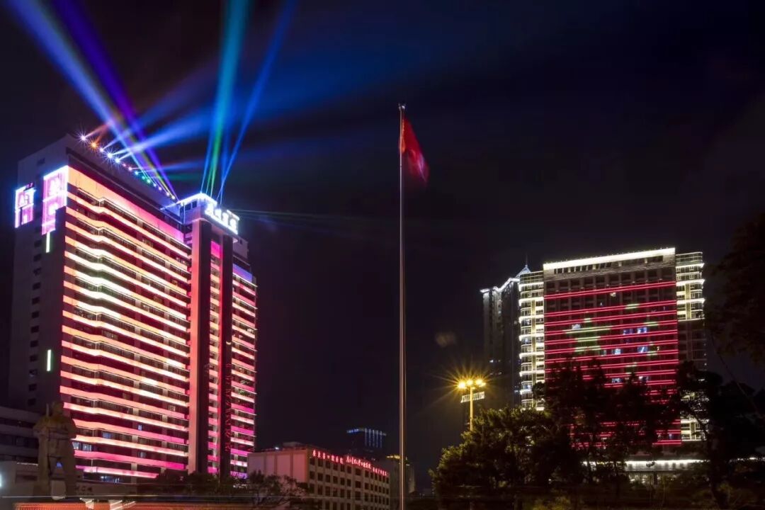 此次改造过程当中最炫酷的一笔,还是以广州解放纪念碑为中心,以华厦大酒店、万艺大厦、广州宾馆、缤缤广场、恒基中心五栋楼宇为“主轴画卷”,采用高清全动态三维视频技术,选取五羊雕像、镇海楼、万木草堂等最具代表性的地标建筑及粤剧、舞狮、龙舟等文化意象,打造环海珠广场主题灯光秀。
