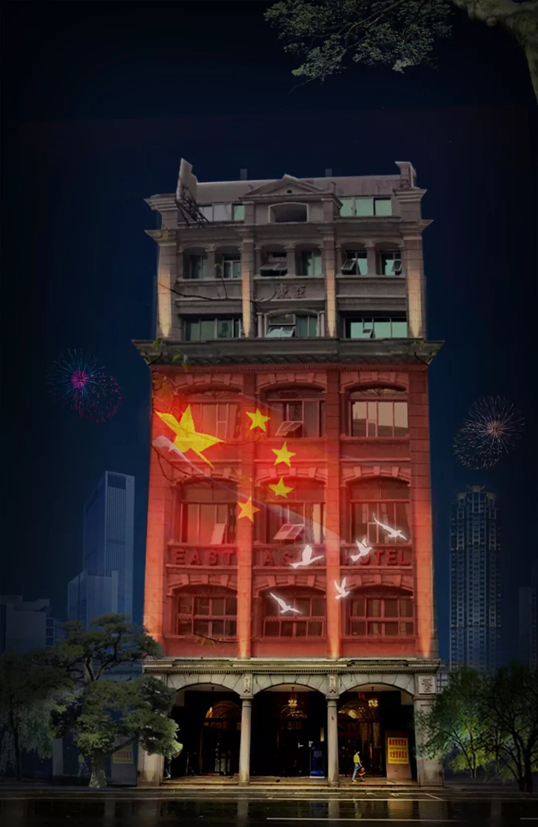 据介绍,这巨幅五星红旗其实是通过灯光设计
