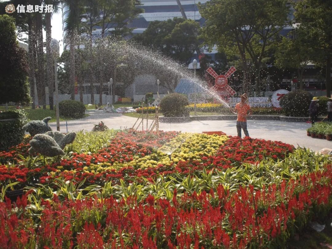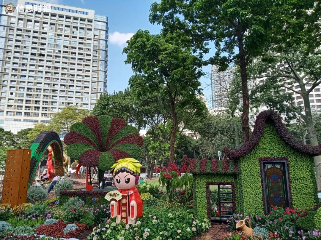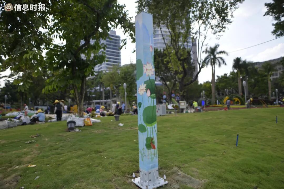 现在,海珠广场东、西两园发现,大部分的布置已基本完成。漫步在公园里,随处可见已布置好的园景,就连园里的放置在公园各个角落里的音箱都由画师们一笔一划绘上美丽的图案,让原本四方四正的音箱也和公园里的景色相融合。