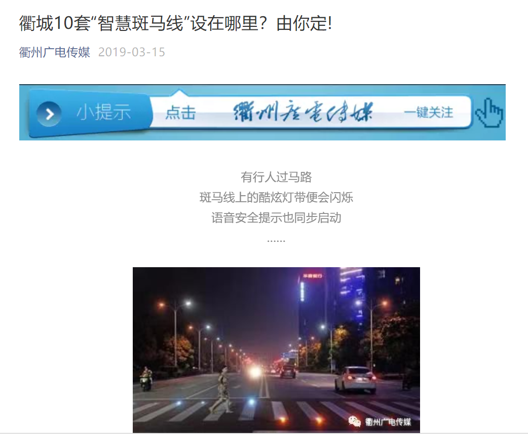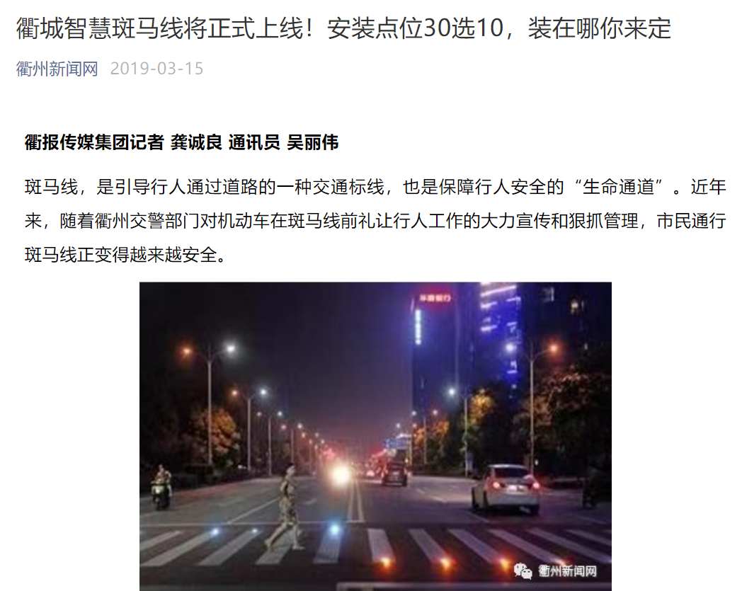 智慧斑马线还可对人车通行该路段情况进行数据采集、处理、控制和分析,为衢州城市智慧交通运营提供基础数据。