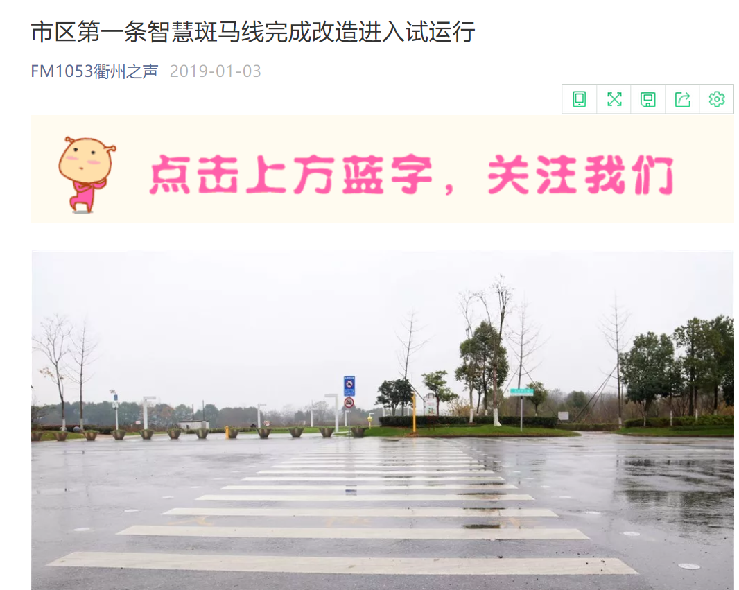 智慧斑马线运行后,有效提高人车通行效率20%以上,并降低了交通事故发生。